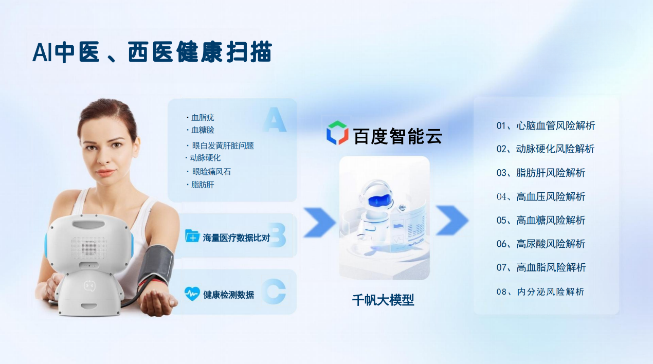 正是在这样的时代背景下,小新AlI健康体系平台应运而生。我们致力于通过人工智能的神奇力量,为基层医疗注入智慧化 元素。托最前沿的AI技术与海量权威医学知识,打造覆盖家庭、社区、医疗、养老和政府的全方位智能化医护体系。”让优质医护产品惠及中国千万家庭。